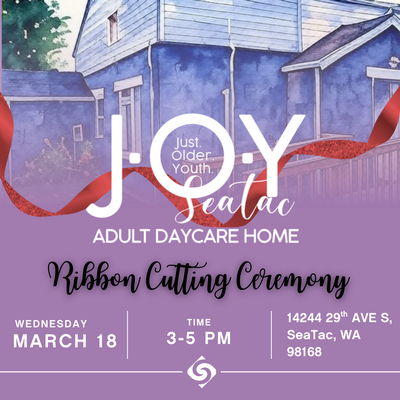 Join us as we celebrate the Grand Opening of JOY SeaTac Adult Daycare Home with a Ribbon Cutting Ceremony! 🎉